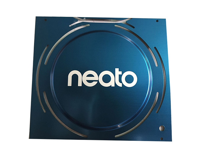 工藝要求:Neato掃(sǎo)地機器人鋁合金銘牌激(jī)光反白效果