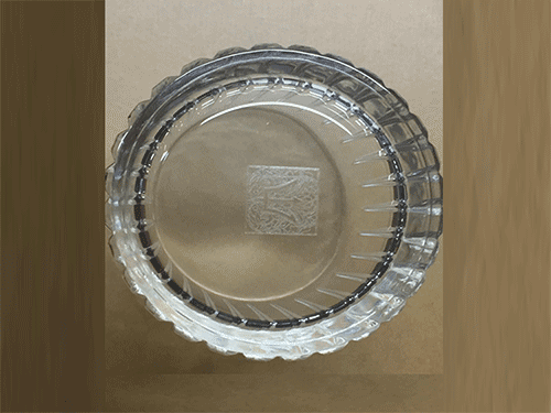 工藝要求:在(zài)玻璃(lí)杯底部鐳射圖案,線(xiàn)條清(qīng)晰,深度0.1m