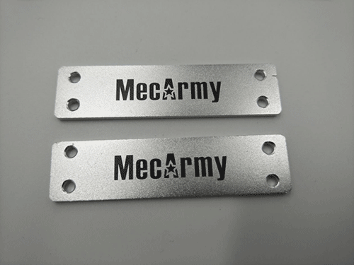 行業類別:五金塑膠(jiāo)產品名稱:銘牌產品材料(liào):鋁合金工藝名(míng)稱:激光刻字工藝要求:無深度的黑色效(xiào)果(guǒ)MecArmy鋁合金銘牌激光刻字過程1、繪製[MECARMY]矢量圖2、選用光纖激光雕刻機(jī)定位(wèi)並(bìng)調試(shì)3、首先將銘牌(pái)來料全檢,看產品有(yǒu)沒有刮花(huā)和凹印的現象。產品左右端各有2個穿孔(kǒng),但無(wú)正反麵之分,雕刻時產品橫著擺放,位置(zhì)上下左右居......